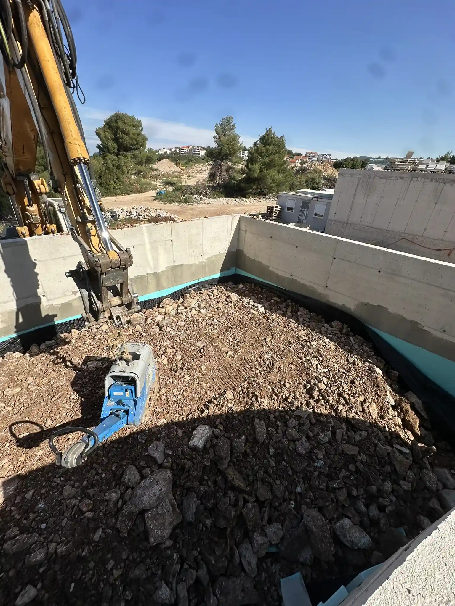 Prije početka iskopa pripremamo gradilište i osiguravamo uvjete za siguran i nesmetan rad. Po potrebi uklanjamo prepreke, niveliramo teren i organiziramo prostor za rad strojeva.